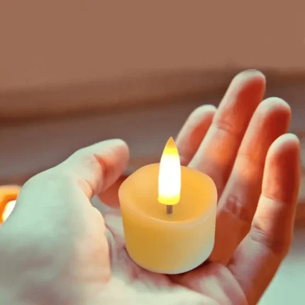 12-Pack flameless LED tea lights with 3D flickering, remote control, and plastic jars for safe, elegant, and versatile decor.