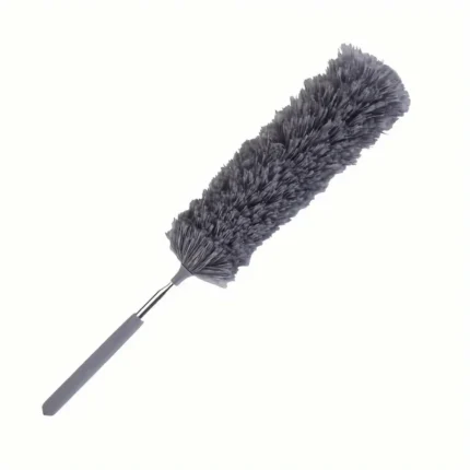 Electrostatic microfiber dusting brush with retractable handle, reusable and washable, perfect for cleaning fans, furniture, keyboards, and cars.
